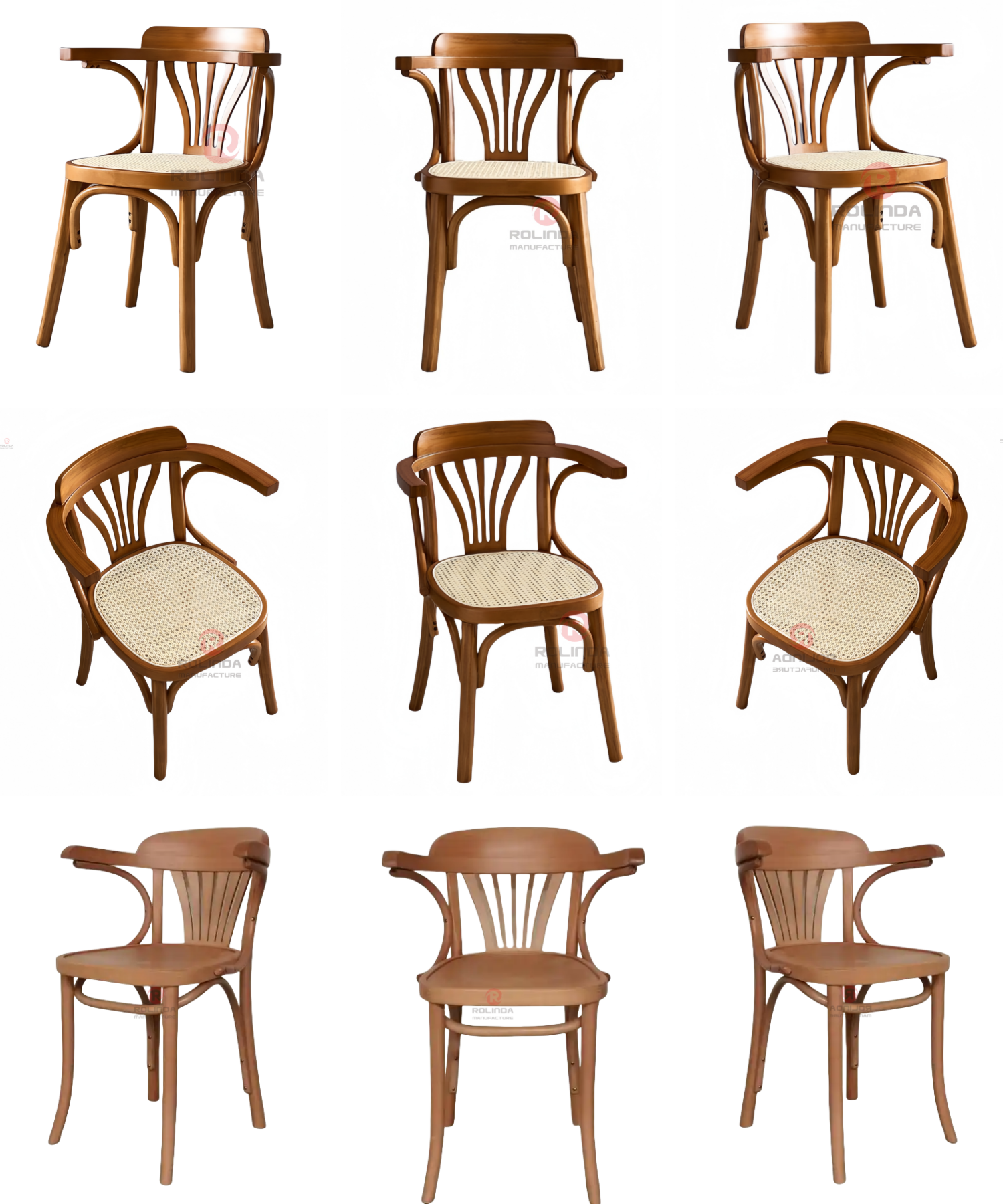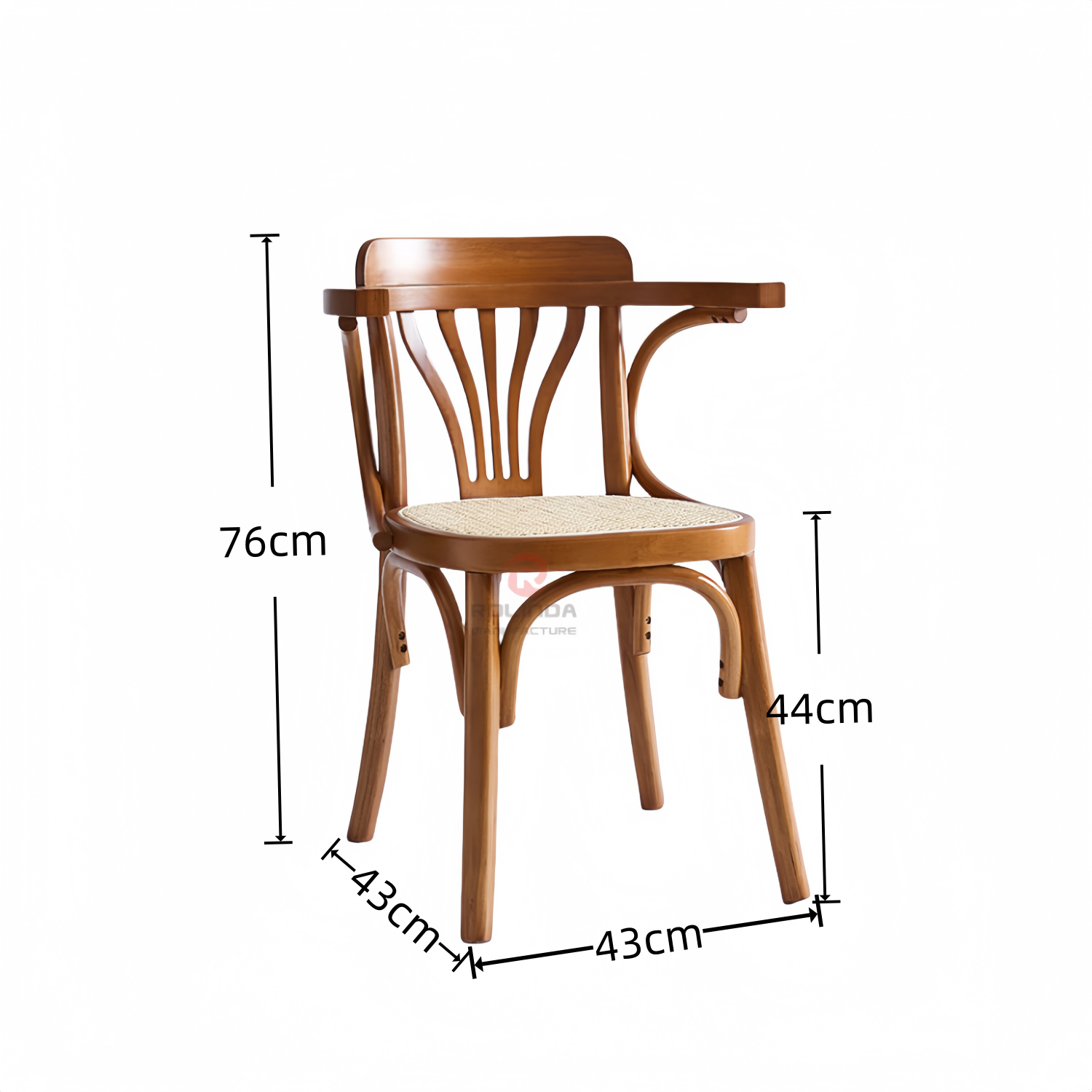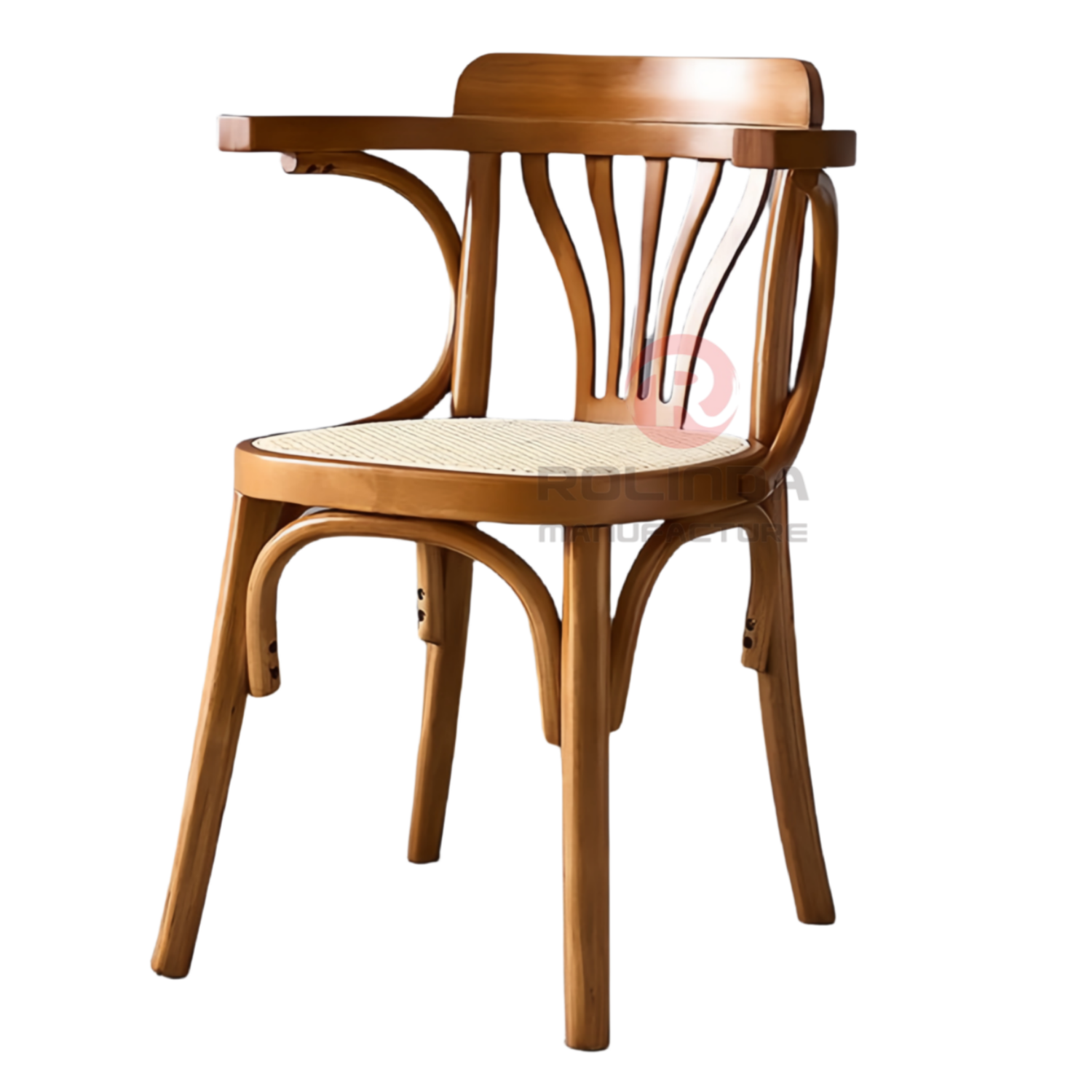 Material & Structure: Crafted from solid wood for stability and durability. The backrest features a fan-shaped design with smooth lines and an elegant appearance. The seat is made of handwoven rattan, offering excellent breathability and a comfortable sitting experience.