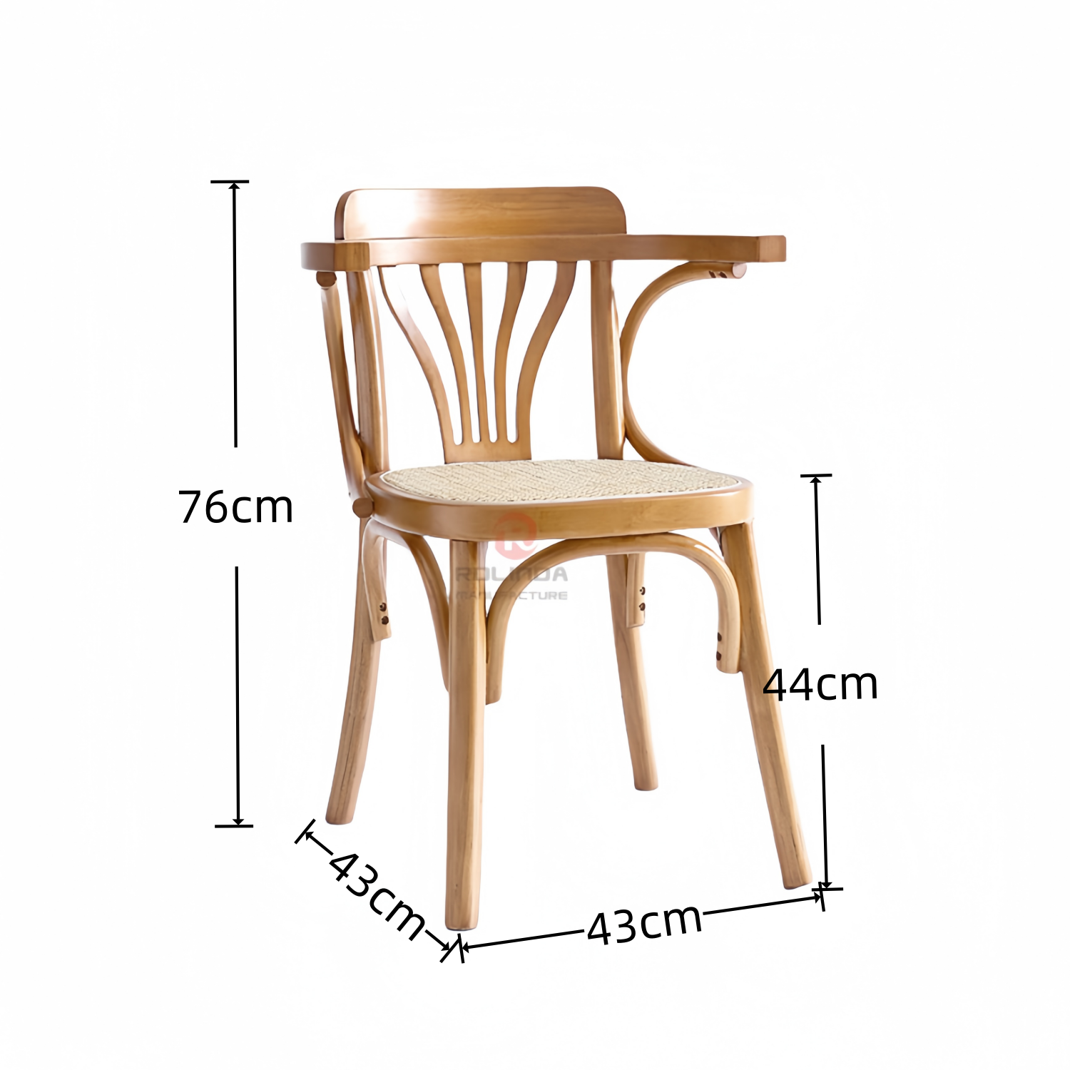 Material & Structure: Crafted from solid wood for stability and durability. The backrest features a fan-shaped design with smooth lines and an elegant appearance. The seat is made of handwoven rattan, offering excellent breathability and a comfortable sitting experience.